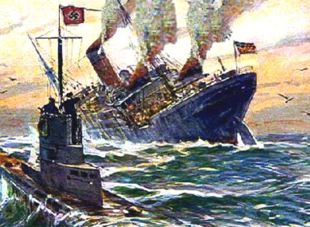 On May, 7 1915, the British ocean liner RMS Lusitania, which ferried people and goods across the Atlantic Ocean between the United States and Great Britain was torpedoed by a German U-Boat and sunk.