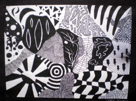 A way of combining elements of art in involved ways to achieve intricate and complex relationships