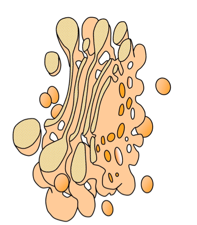 Golgi Apparatus appears as a stack of closely apposed membranes, or vesicles.
