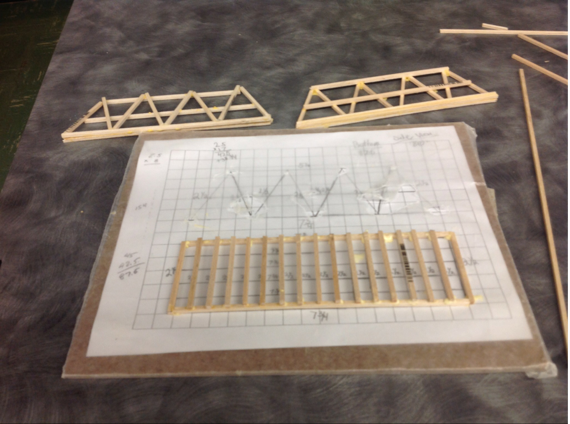 This truss bridge design is almost finished for testing, it just needs to have a top and a few more sticks at the bottom of the design.