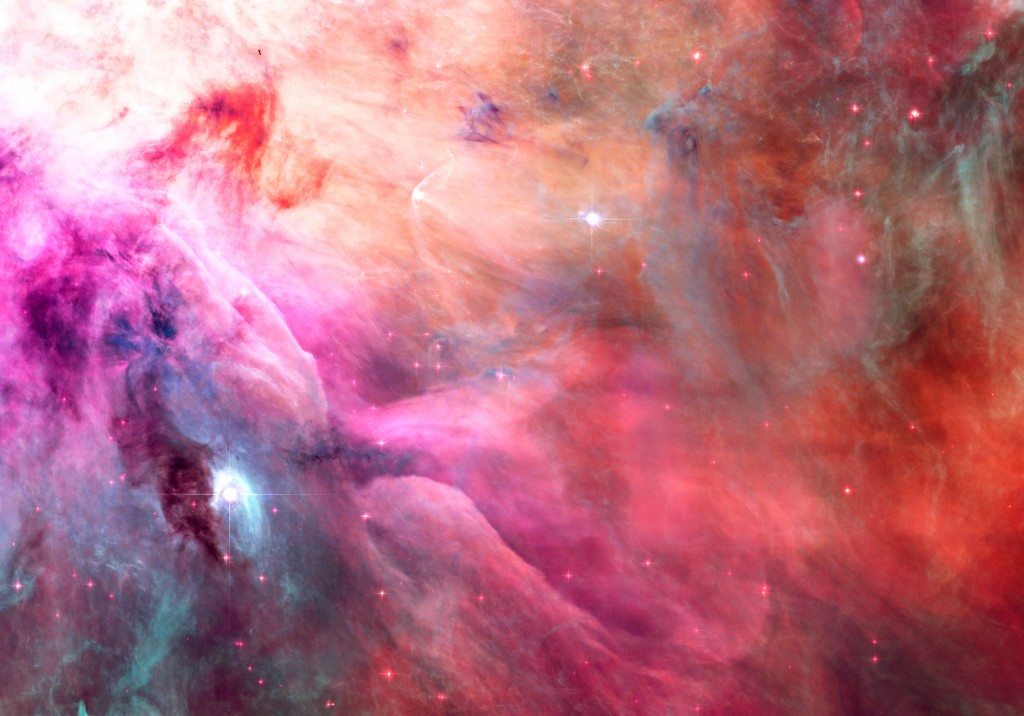 The Orion nebula, aka Messier 42, was named because of its location in the Orion constellation. It was formed by drifting gas in between stars, and dust that was given off by old stars that either exploded or blew their material into space.