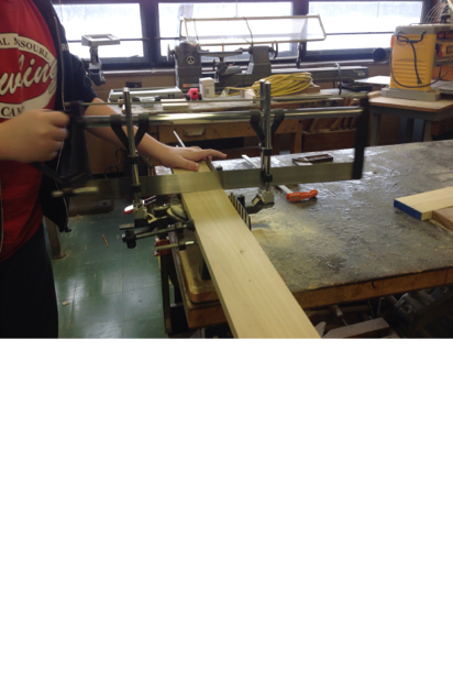 Me cutting my wood piece at the miter saw. You have to hold the wood in place or it will get out of line and mess your cut up.