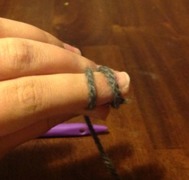First, you pinch any piece of yarn between your index finger and your thumb. Second, you wrap the yarn around your index finger twice. Third, move the piece yarn, closer to your knuckles, over the piece that is closer to your finger tip. Fourth, move the piece of yarn, that is now closer to your knuckles, over the tip of your index finger. Finally, put the slip knot onto one of your needles.