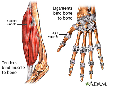 Tendon - fibrous connective tissue which attaches muscle to bone