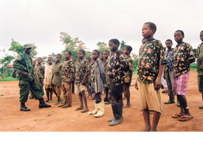 Young 7-8 boys are abducted and forced to join the army. Boys take drugs that make them wicked and cruel. Girls are raped and used as sex slaves.