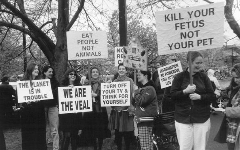 Women stand outside protesting their beliefs of euthanasia (Churchofeuthanasia.com)