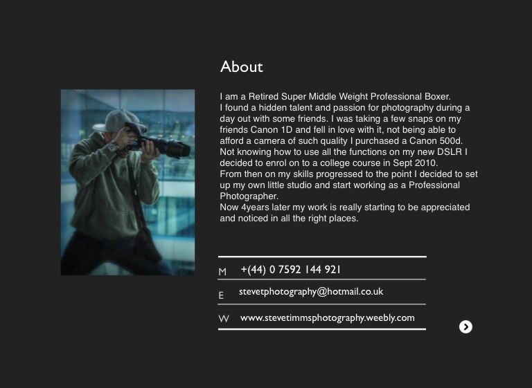 I found a hidden talent and passion for photography during a day out with some friends. I was taking a few snaps on my friends Canon 1D and fell in love with it, not being able to afford a camera of such quality I purchased a Canon 500d.