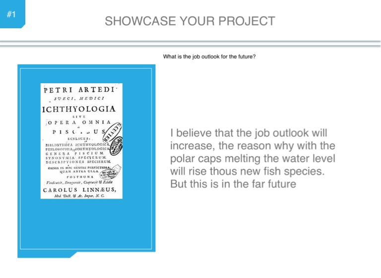 I believe that the job outlook will increase, the reason why with the polar caps melting the water level will rise thous new fish species. But this is in the far future