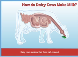 Cows produce milk from the four different process of its stomach. 1 The rumen, which the cow will chew the grass half way. The rumen softens and breaks down with the stomach juices and microbes or bacteria. Then theres the reticulum, which makes the grass even softer, it will come back up for the cow to chew for about a minute. Theres also the omasum, which is digested in to the stomach were the cud of grass is broken down even further. The last step is the abomasum were the grass is digested. Some of it goes to the udder and the other is used for the cow to stay healthy.