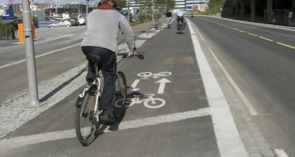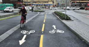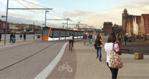 Sykkel mot nord, her ved Bryggen - med eller uten Bybanen.
