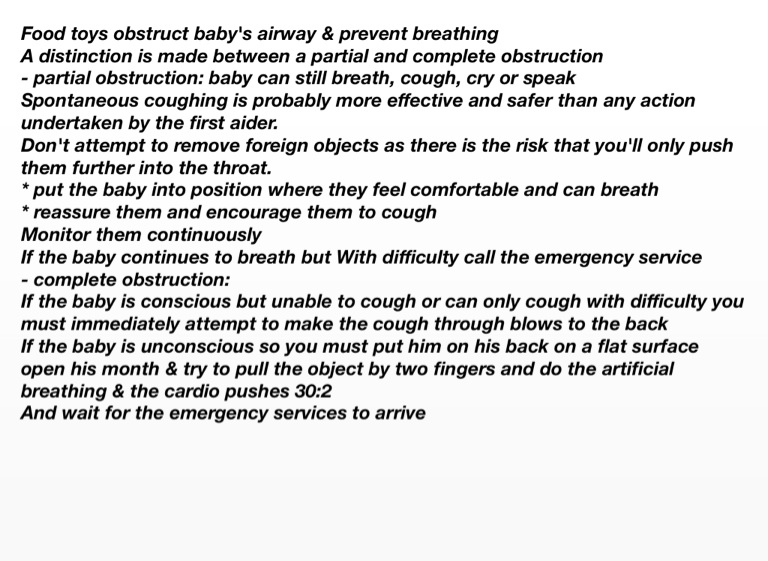 If the baby is conscious but unable to cough or can only cough with difficulty you must immediately attempt to make the cough through blows to the back