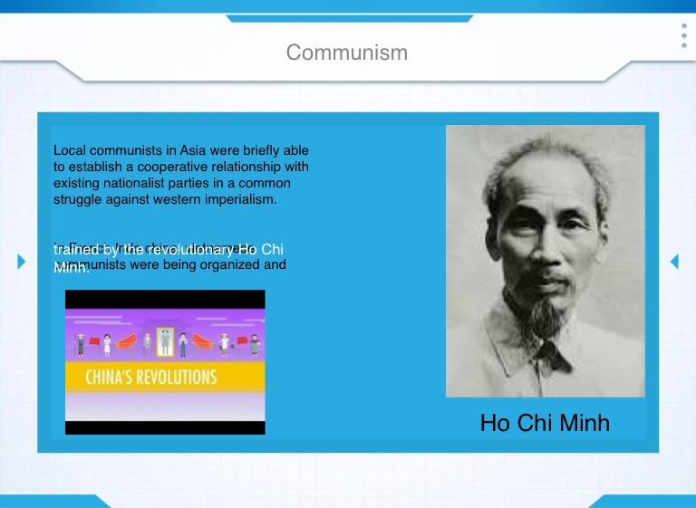 Local communists in Asia were briefly able to establish a cooperative relationship with existing nationalist parties in a common struggle against western imperialism. In French Indo china, vietnamese communists were being organized and