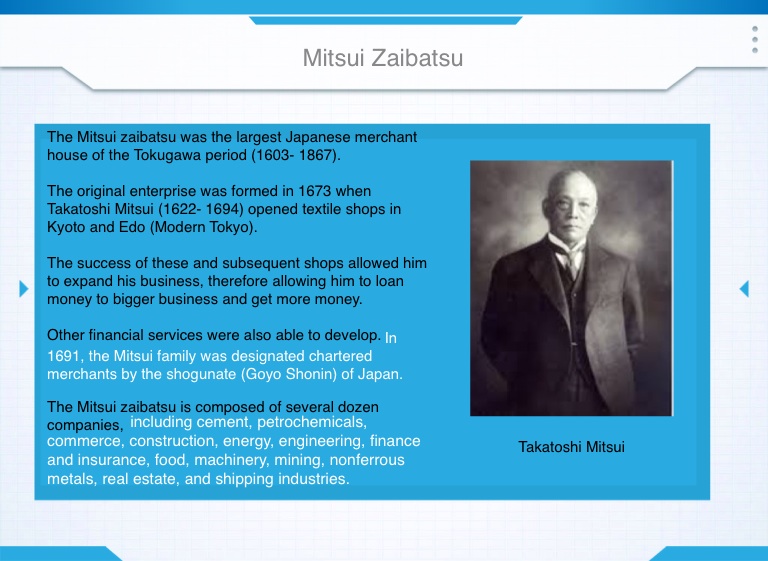 The Mitsui zaibatsu is composed of several dozen companies,