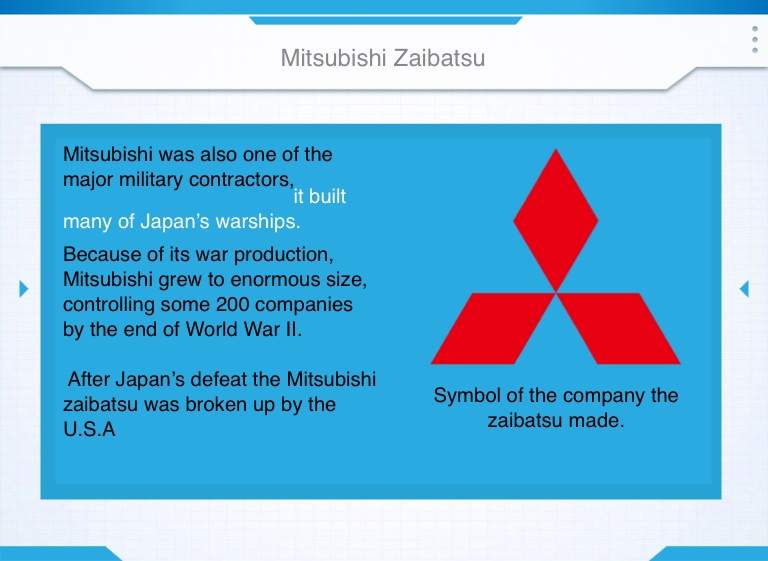After Japan’s defeat the Mitsubishi zaibatsu was broken up by the U.S.A