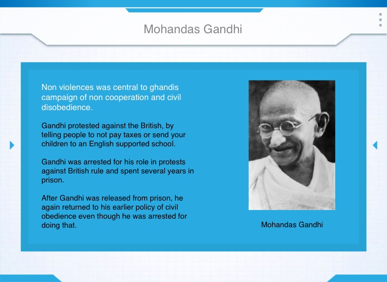 Gandhi protested against the British, by telling people to not pay taxes or send your children to an English supported school.