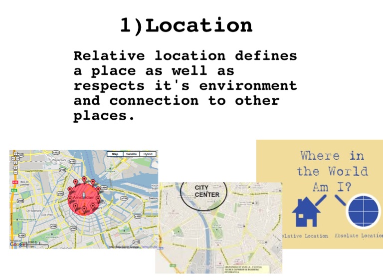 Relative location defines a place as well as respects it's environment and connection to other places.