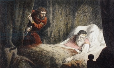 Macbeth slowly creeps down the halls of his eerie castle and his shaking steeps echoes as he enters the room where which the king is sleeping. He looks down at the cold, hard marble floors, He glances around to see where the guards lay asleep drunken on the floor.