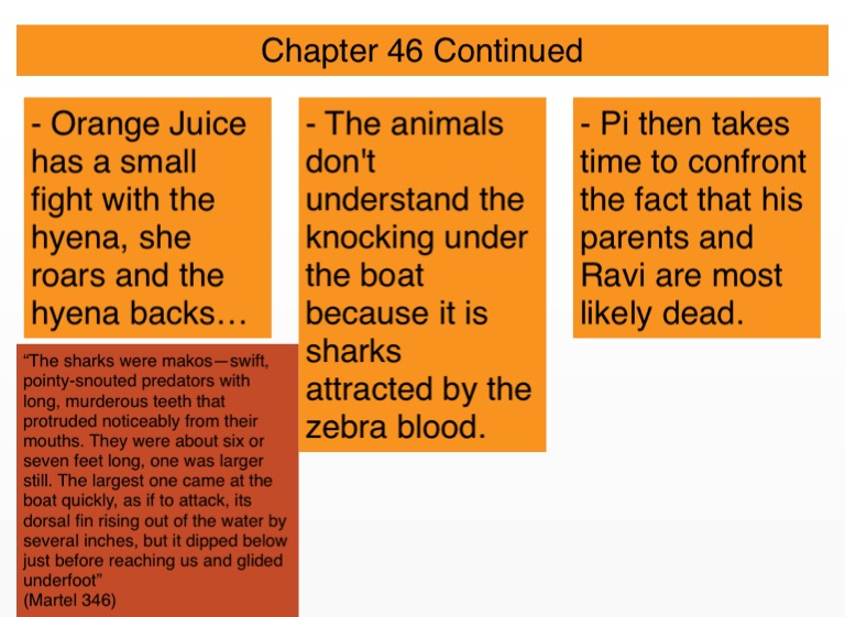 - Pi then takes time to confront the fact that his parents and Ravi are most likely dead.