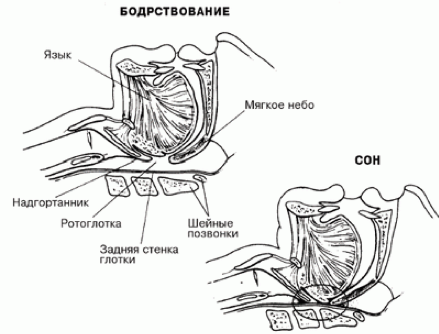 В основе патогенеза СОАС лежит снижение давления в просвете ВДП при вдохе, что приводит к периодическому спадению дыхательных путей на уровне глотки во время сна.