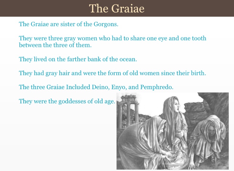 The three Graiae Included Deino, Enyo, and Pemphredo.