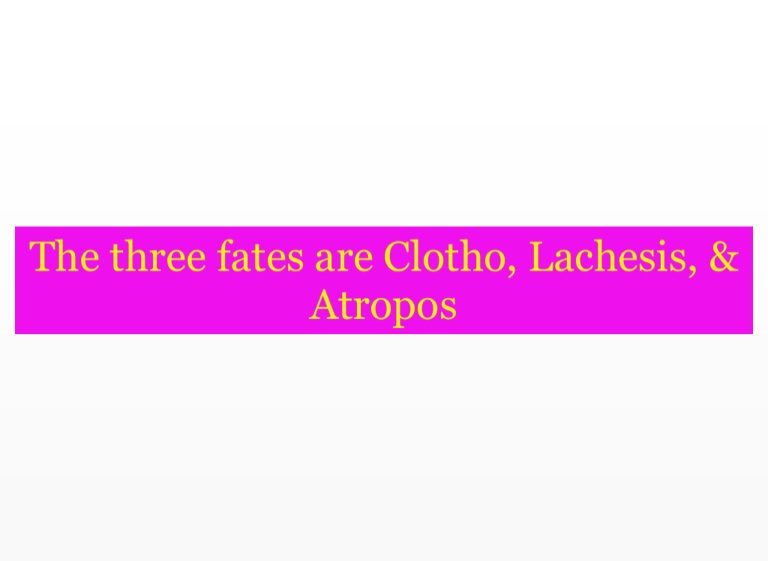 The three fates are Clotho, Lachesis, & Atropos