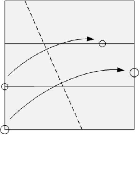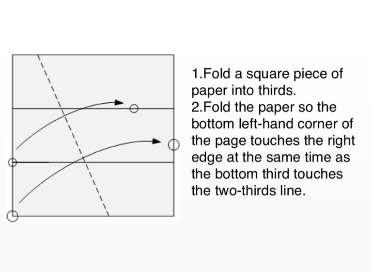 2.Fold the paper so the bottom left-hand corner of the page touches the right edge at the same time as the bottom third touches the two-thirds line.