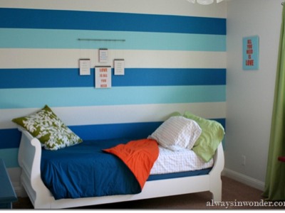 In this room the lines go side to side and are colored differently light color and a blue and white that pops out in the room