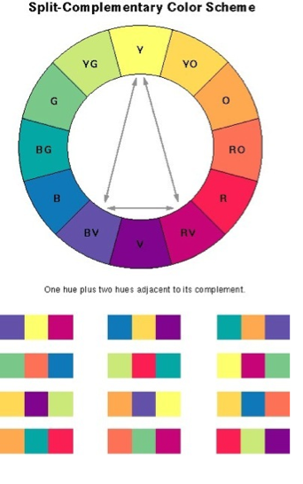 A split complementary color scheme is one of several methods for selecting harmonious groups of colors from the color wheel.