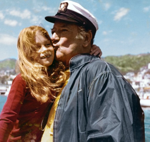 Right: John Wayne and daughter Marisa on board the Wild Goose at Catalina Island.