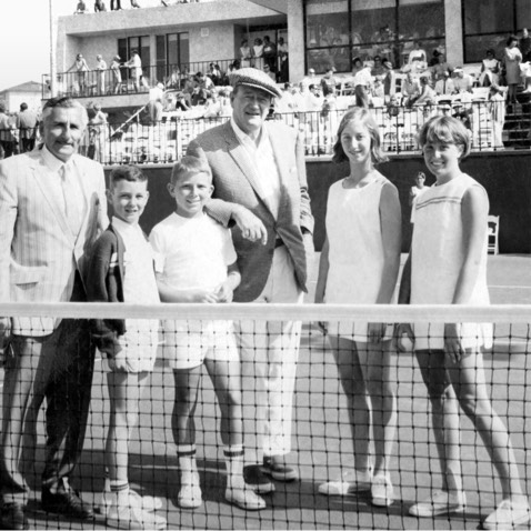 John Wayne with the young winners of a doubles tournament.