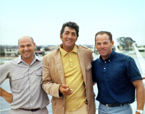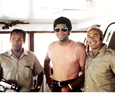 Chief Engineer Ken Minshall and future Captain Bert Minshall pictured with Dean Martin on board the Wild Goose.