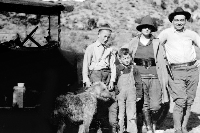The Morrison Family: Marion (aka Duke) with his dog Duke, his younger brother Robert and their parents in Glendale, CA