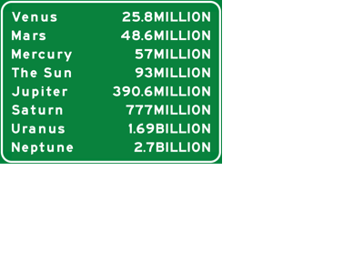 Earth is 92,960,000 miles (149,600,000 km) from the sun. Earth is 384,400 km from the moon. Mercury is 77.3 million km (48.0 million miles) from Earth. Venus is 40 million km (25 million miles) from Earth. Mars is 35 million miles from Earth. Jupiter is 588 million km (365 million miles) from Earth. Saturn is 1.2 billion km (746 million miles) from Earth. Uranus is 2.57 billion km (1.6 billion miles) from Earth. Neptune is 4.3 billion km from Earth.