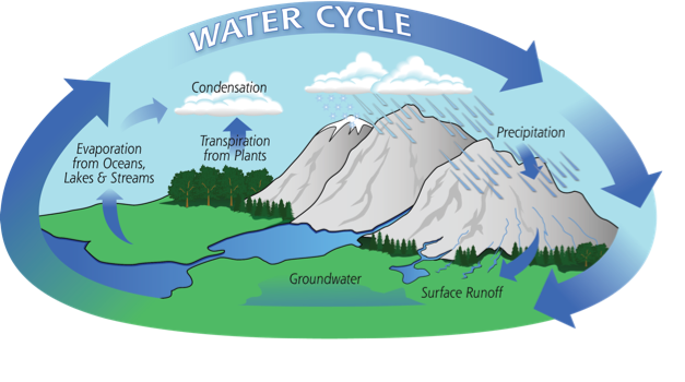 The water cycle is how water moves in nature. It is evaporation, condensation, and precipitation. We can not create water, so this means if it is polluted then we will eventually run out of clean water.