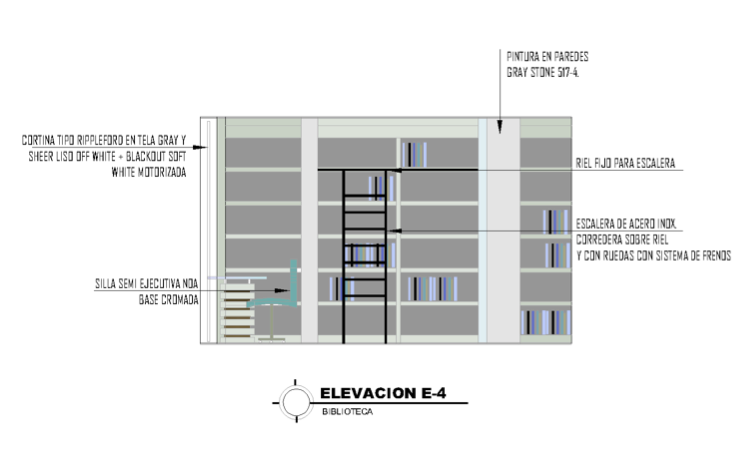 "BIBLIOTECA CON ESTANTES EN BLANCO Y UNA ESCALERA TRANSPORTABLE "