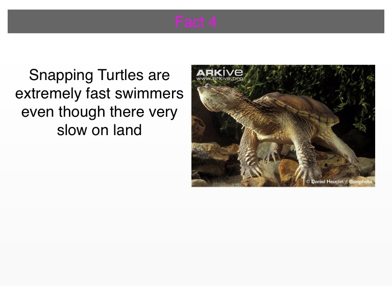 Snapping Turtles are extremely fast swimmers even though there very slow on land