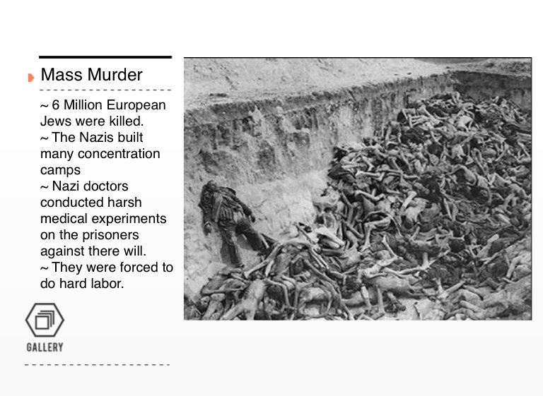 ~ 6 Million European Jews were killed. ~ The Nazis built many concentration camps ~ Nazi doctors conducted harsh medical experiments on the prisoners against there will. ~ They were forced to do hard labor.