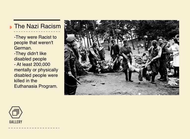 -They were Racist to people that weren't German. -They didn't like disabled people - At least 200,000 mentally or physically disabled people were killed in the Euthanasia Program.