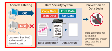 Document Control function, prevents unauthorized handling of confidential documents --- requires Data Security Kit (DSK)