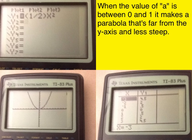 When the value of "a" is between 0 and 1 it makes a parabola that's far from the y-axis and less steep.