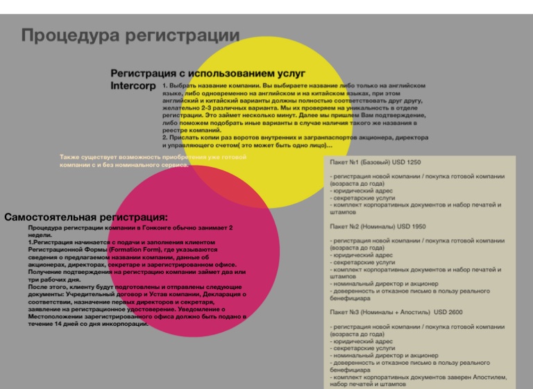 1.Регистрация начинается с подачи и заполнения клиентом Регистрационной Формы (Formation Form), где указываются сведения о предлагаемом названии компании, данные об акционерах, директорах, секретаре и зарегистрированном офисе.