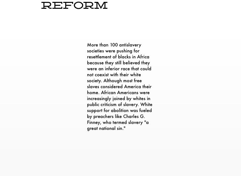 More than 100 antislavery societies were pushing for resettlement of blacks in Africa because they still believed they were an inferior race that could not coexist with their white society. Although most free slaves considered America their home. African Americans were increasingly joined by whites in public criticism of slavery. White support for abolition was fueled by preachers like Charles G. Finney, who termed slavery "a great national sin."