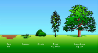 When many pioneer species have arrived at the place small plant life starts to come into place.