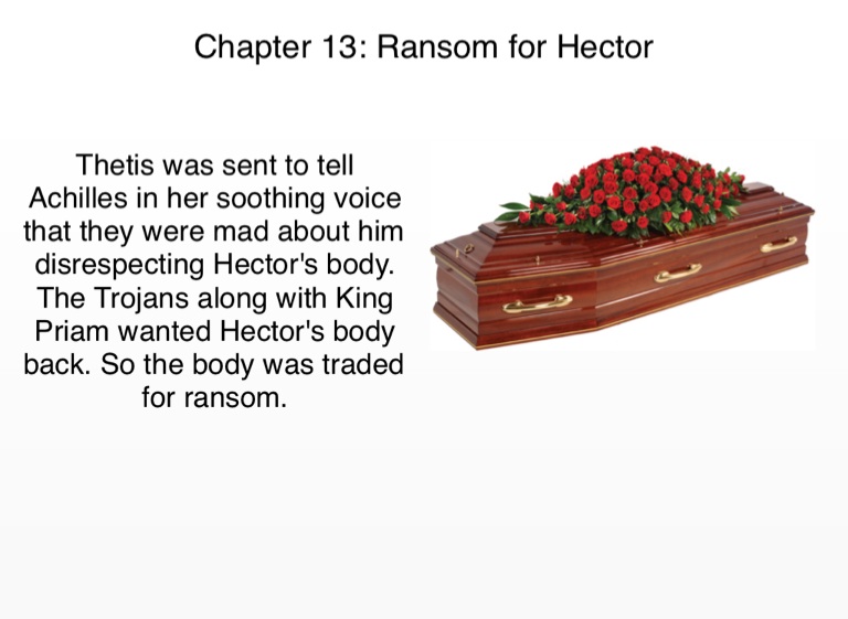 Thetis was sent to tell Achilles in her soothing voice that they were mad about him disrespecting Hector's body. The Trojans along with King Priam wanted Hector's body back. So the body was traded for ransom.
