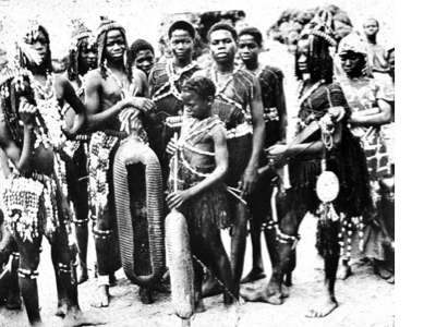 -rituals involving people dressing up in costumes of animals dancing around. Ex: (on slide 3)