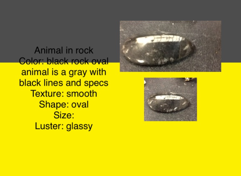 Color: black rock oval animal is a gray with black lines and specs