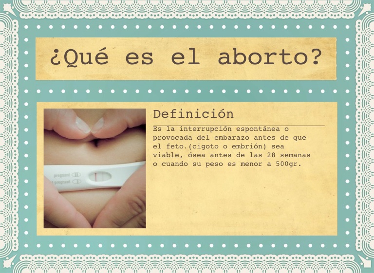 Es la interrupción espontánea o provocada del embarazo antes de que el feto (cigoto o embrión) sea viable, ósea antes de las 28 semanas o cuando su peso es menor a 500gr.