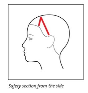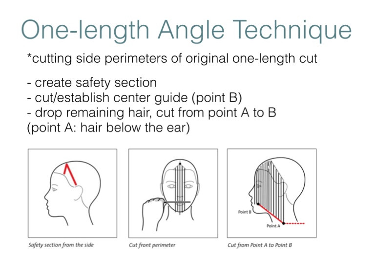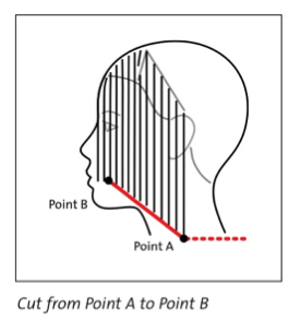 - drop remaining hair, cut from point A to B (point A: hair below the ear)