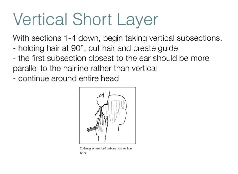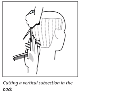 - the first subsection closest to the ear should be more parallel to the hairline rather than vertical