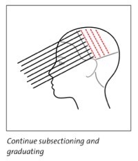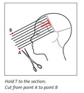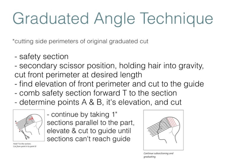 - secondary scissor position, holding hair into gravity, cut front perimeter at desired length